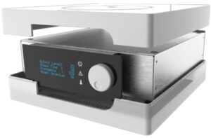 Fisiowarm App for iPad (included), OLED display, and rotary encoder with multifunction button.