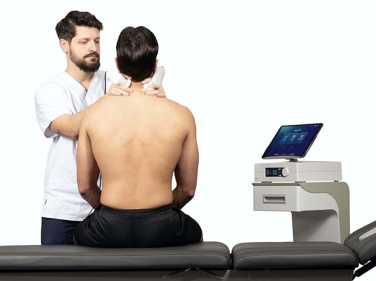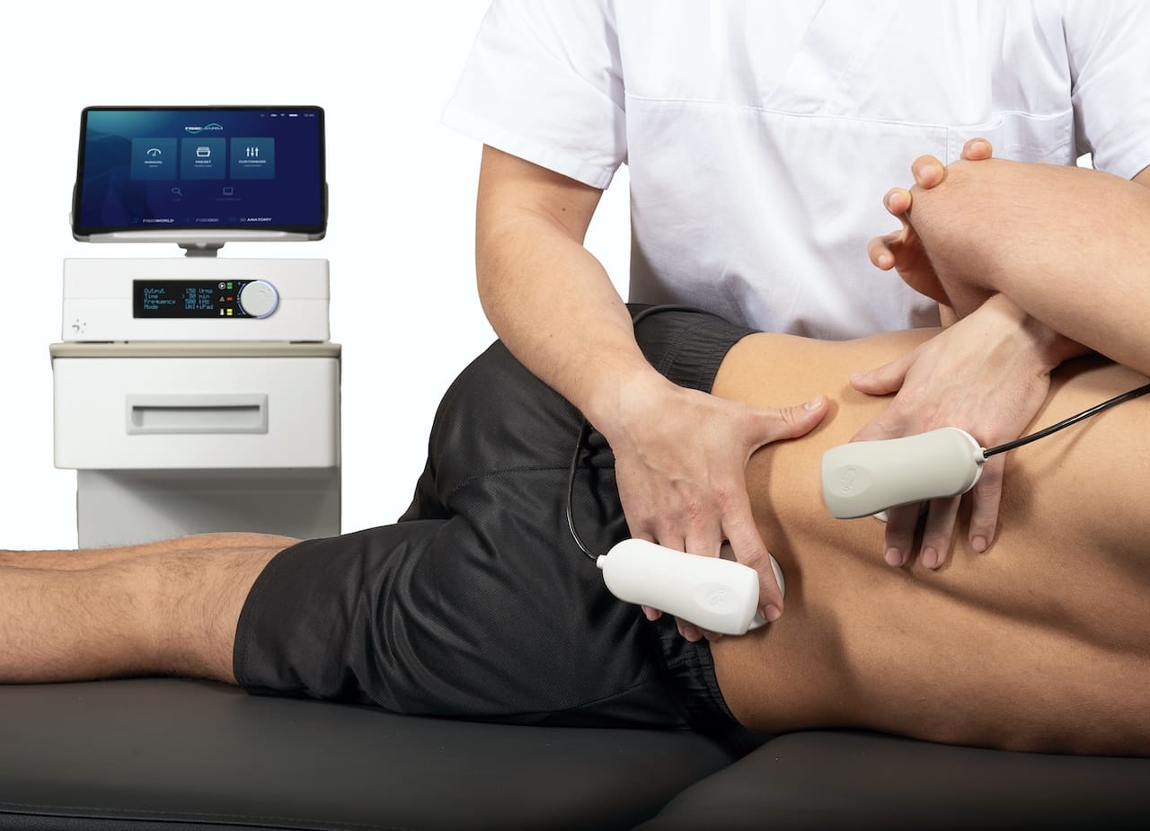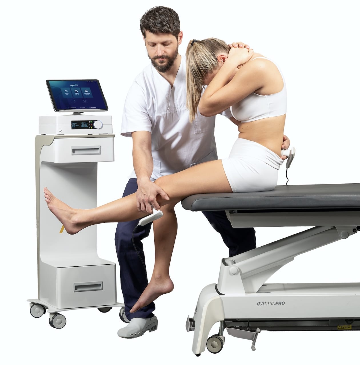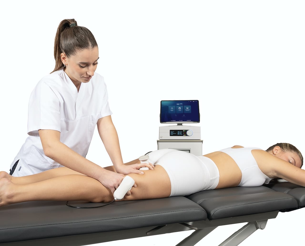With this system, it is possible to treat a muscle segment precisely from origin to insertion and to work with more effective geometries, without dispersing energy to other areas—guiding the energy manually and creating customized treatment pathways.
