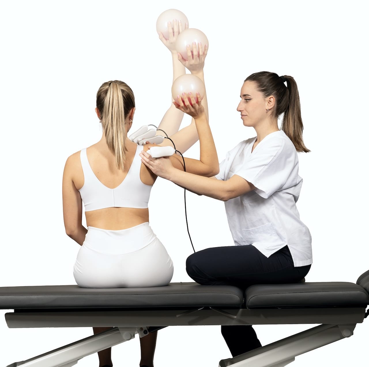 The Dynamic Neutral system allows the therapist to hold two electrodes simultaneously, making it possible, for example, to perform targeted, deep, and precise joint treatments. All this while remaining free to carry out mobilization or exercises with the patient, without being constrained to the treatment table by a fixed return plate.